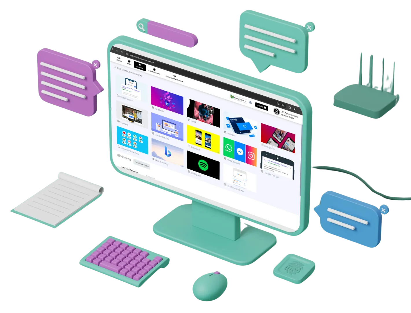 Crie anúncios rapidamente utilizando nossa inteligência artificial que cria campanhas para você em segundos. Você também terá modelos prontos que nossa equipe cria para você.